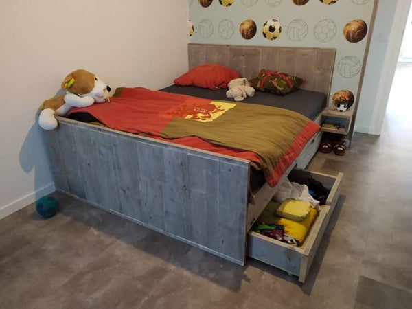Prachtig tweepersoonsbed met hoog hoofdbord.